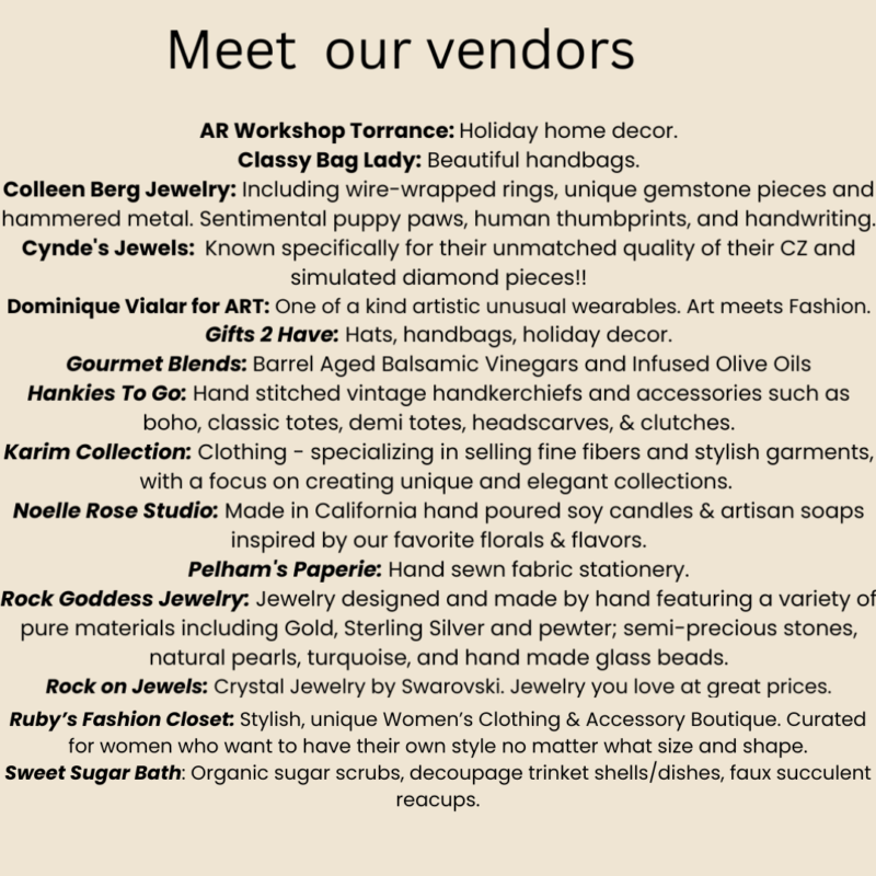 Shop Las Candalistas Creations, Garden Shop, Gourmet Jams and Foods, and Found Treasures
