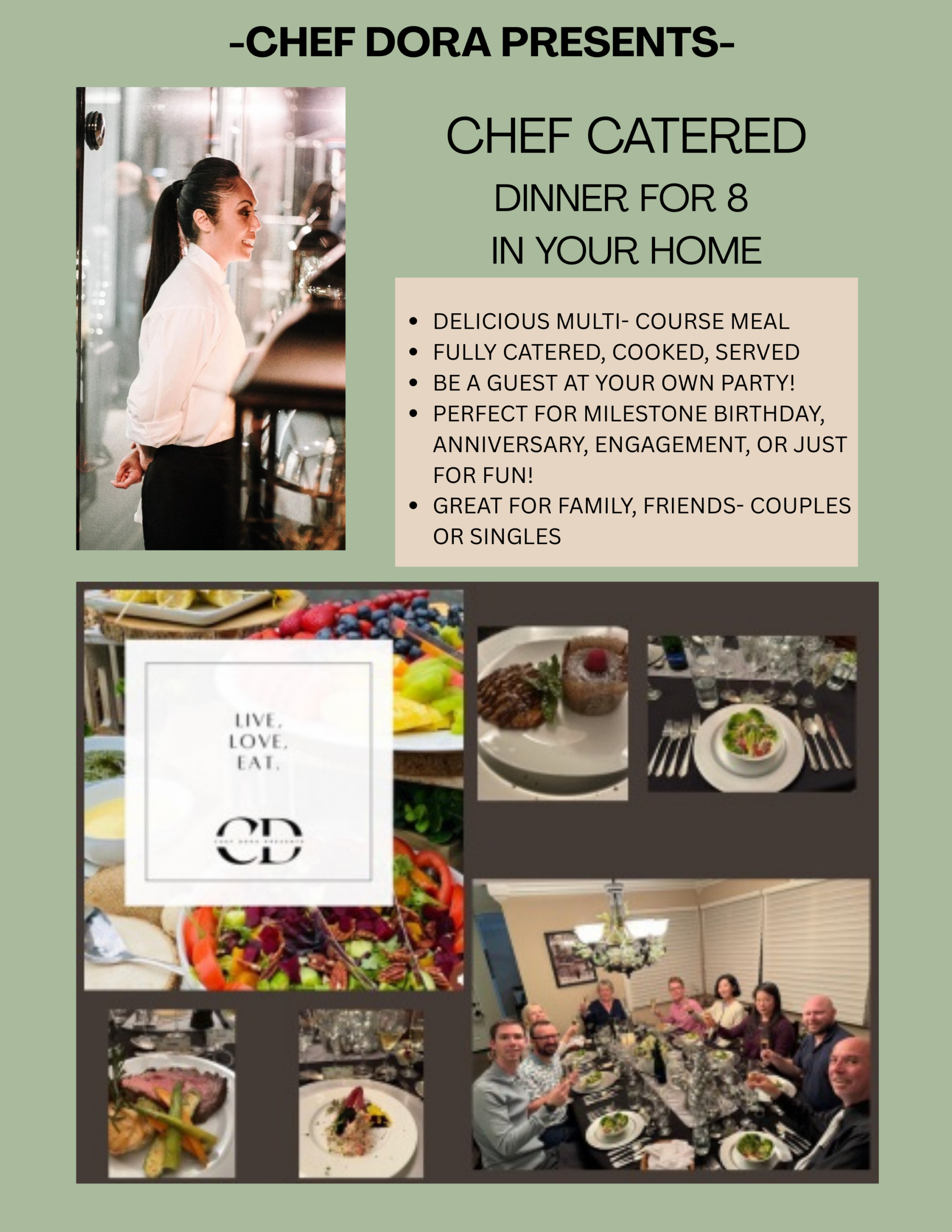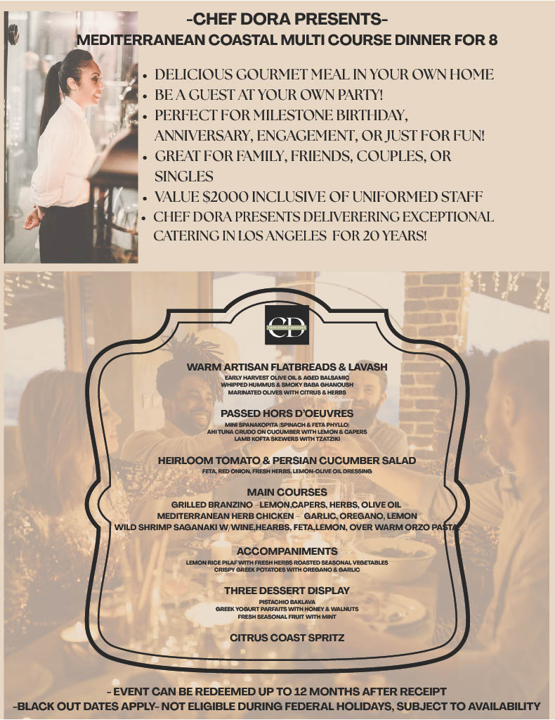 Our favorite caterer, Chef Dora Presents, will serve us appetizers, a main buffet, and desserts thoughtfully styled to complement the Spaghetti Western theme with hearty dishes, bold flavors, and cinematic presentation.
