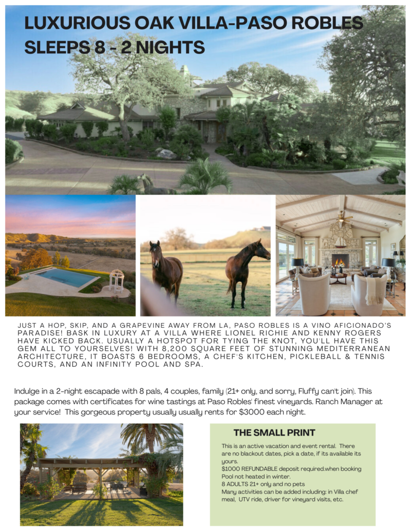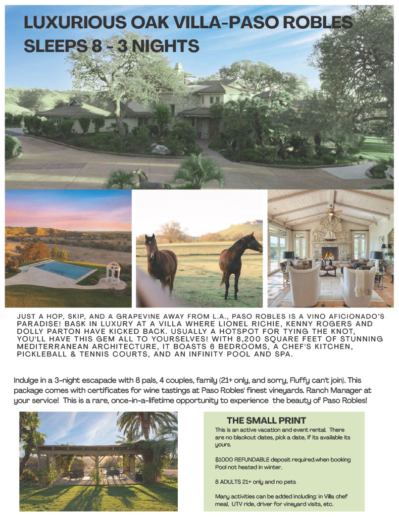 An exciting Live Auction Showdown featuring an exceptional collection of exclusive experiences and getaways. Raise your paddle, test your nerve, and help us do some good—one dramatic bid at a time. Click on the photos below to see what we are offering. Includes 2 bucket list Buy-it-Now experiences!